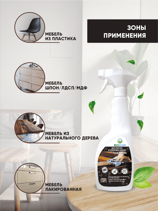Высокоэффективное средство для очистки и полировки пластиковой и деревянной мебели. Восстанавливает, придает новизну и блеск, обеспечивает антистатический эффект. Сохраняет первоначальный цвет. Легко распределяется по поверхности, не оставляя жирных пятен и масляных разводов, а лишь легкий приятный аромат.